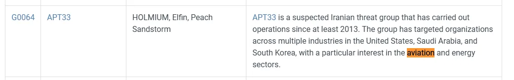 Finally, I conducted a focused investigation on APT33, a group known to target the aviation sector and cloud environments.