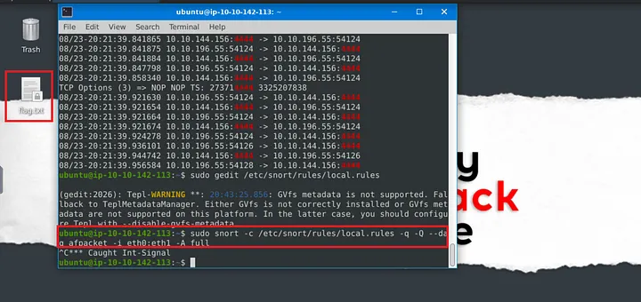 After a short wait, a flag.txt file appeared on the Desktop, confirming the attack was stopped.