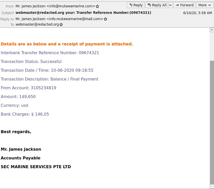 The executive was not expecting this email, which mentioned a money transfer and contained an unexpected attachment. This scenario simulated a phishing attempt.