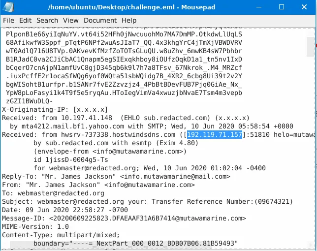 - Opened the email using Thunderbird: thunderbird challenge.eml