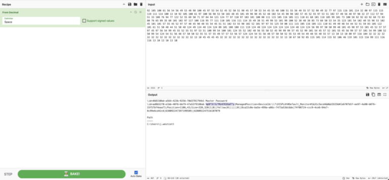 - Extracted hex payloads from DNS queries, reassembled → decoded KeePass DB and retrieved master password.